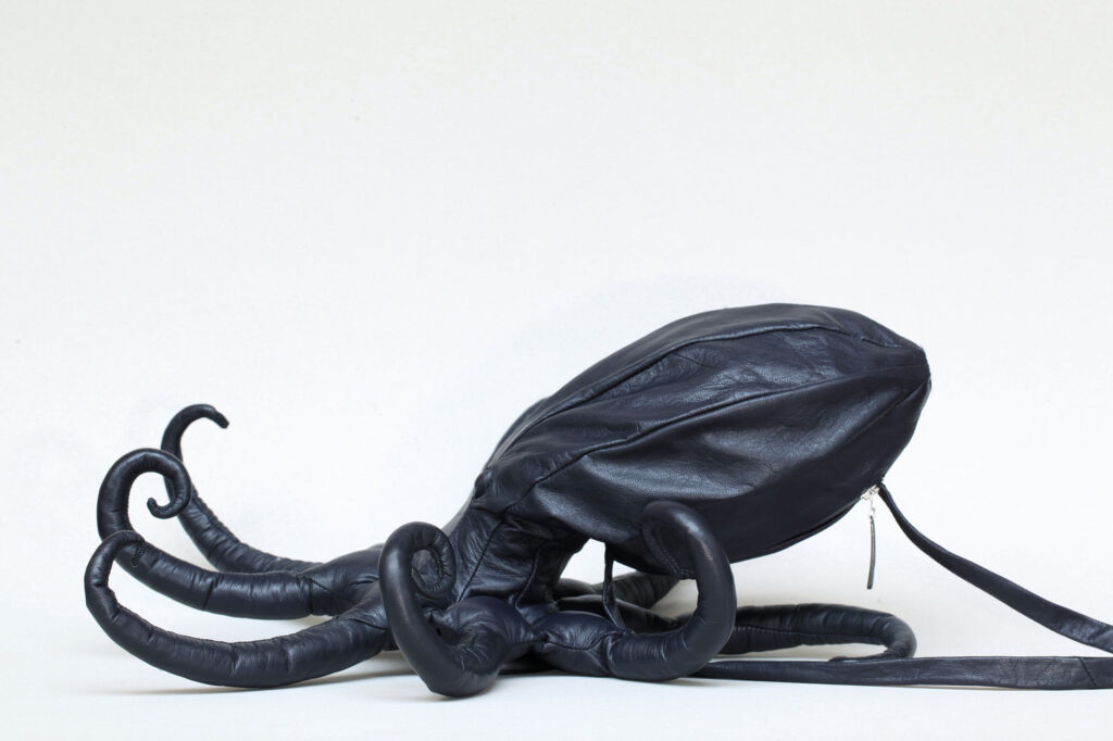 Kleine Tasche aus Ziegenleder als Ergänzung zu einem Octopuskostüm.