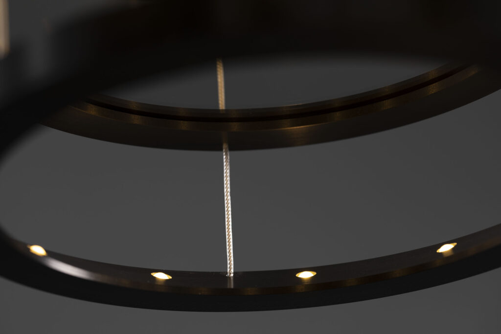 Aluminium, Spiegel, Stahlseile, 3D-Druck, LEDs
