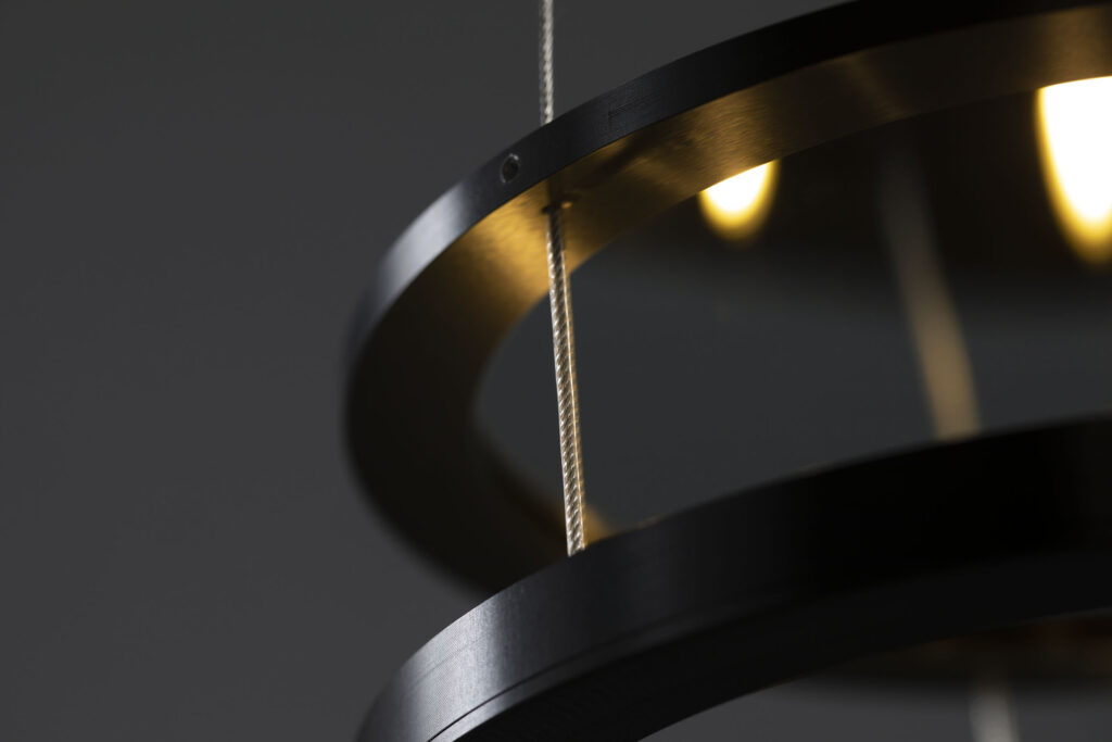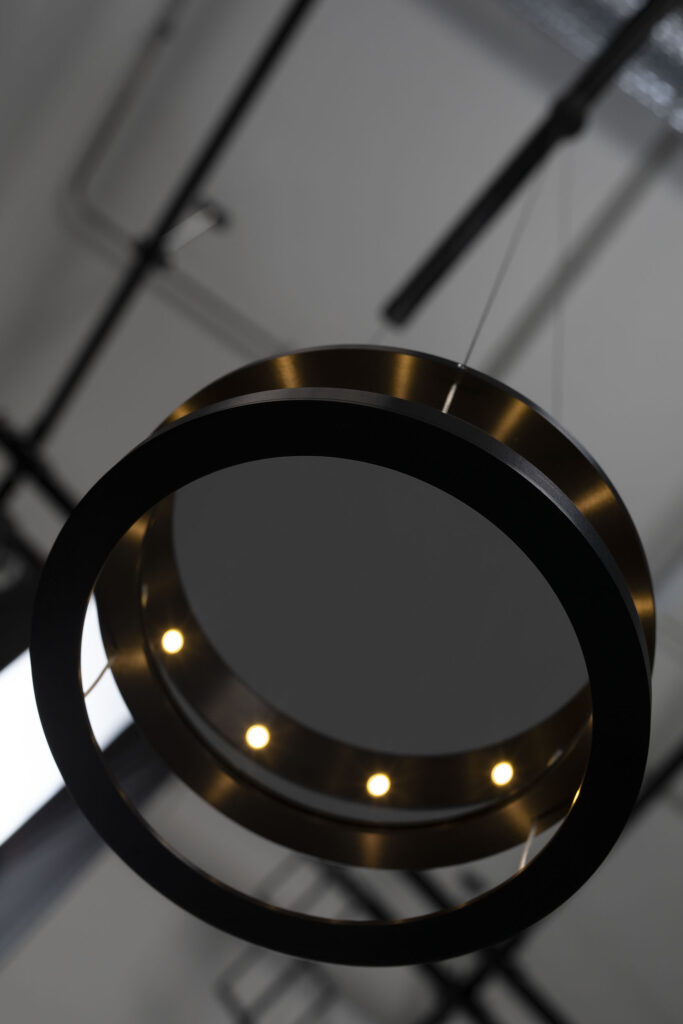 Es entsteht ein Spiel der unterschiedlichen Intensitäten aus der Überlappung von Lichtkegeln und deren Schattenformen.